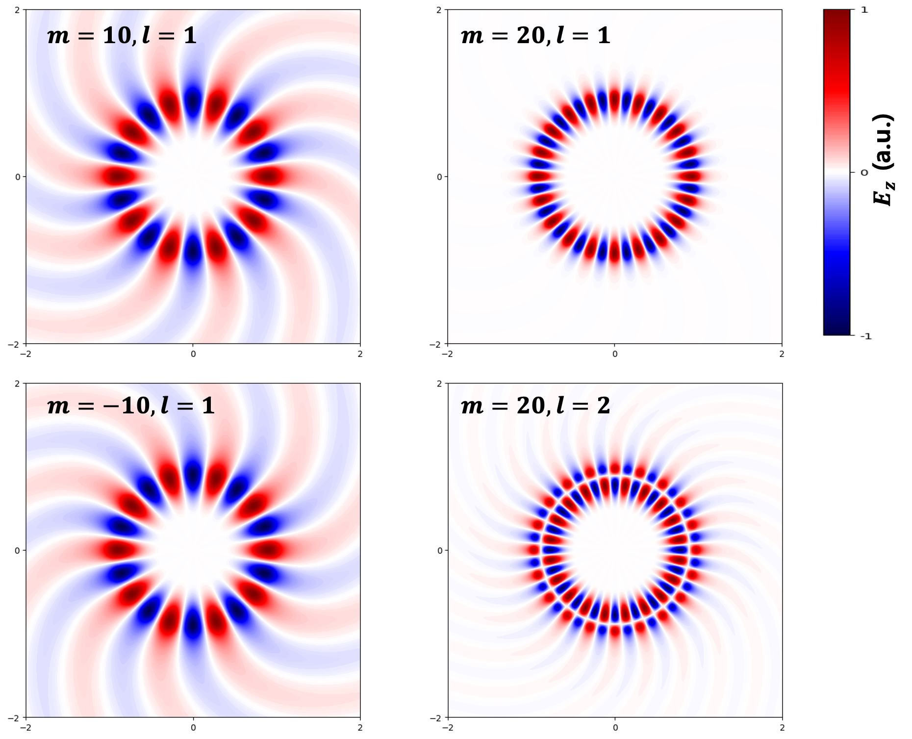 Since the system has rotational symmetry, the ansatz $\psi(r,\phi) = \Psi(r)e^{im\phi}$ is used. where the $2\pi$ periodicity implies $m \in \mathbb{Z}$ and can be connected with the slab waveguide propagtion constant as $\beta=\frac{m}{R}$. Then by assuming $k_z \approx 0$ that propagation in the z-direction is negligible,