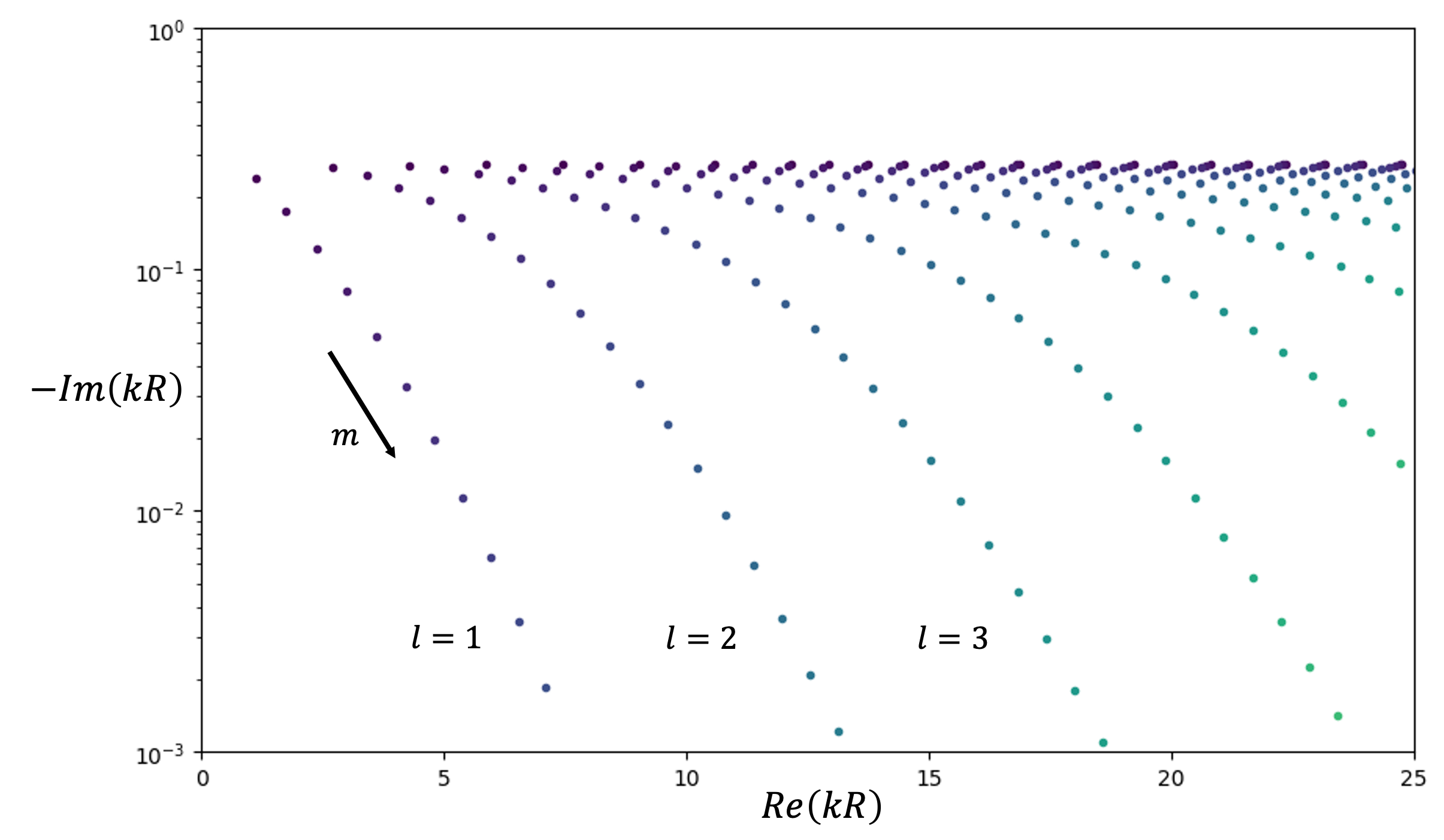 $kR$ values are complex with $\Re(kR)=\frac{2\pi R}{\lambda}, Q=\frac{\Re(kR)}{-2\Im(kR)}$